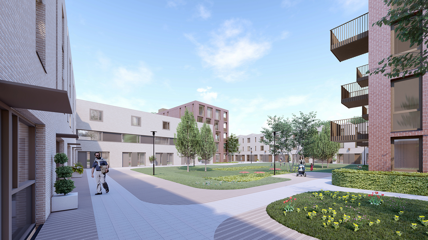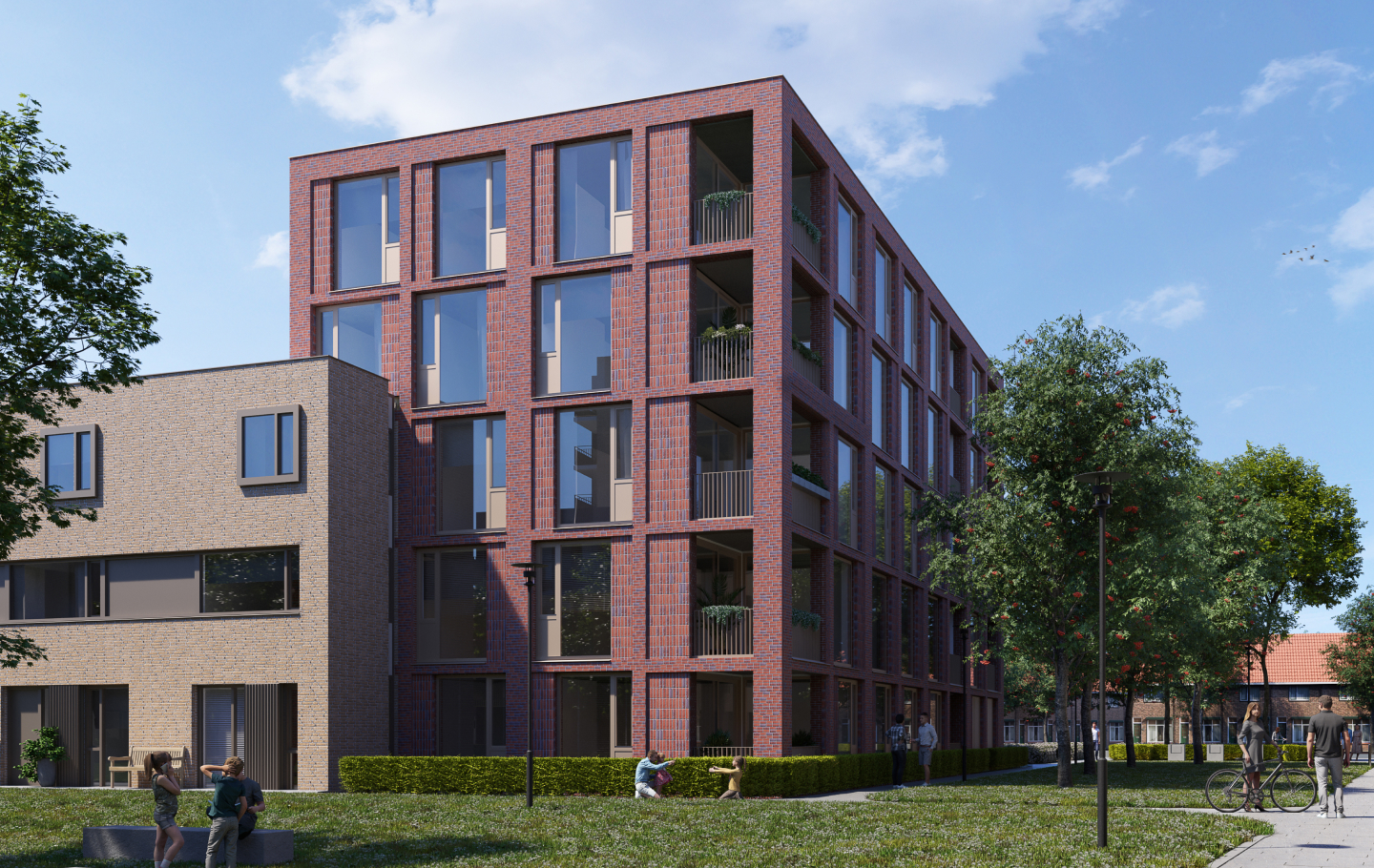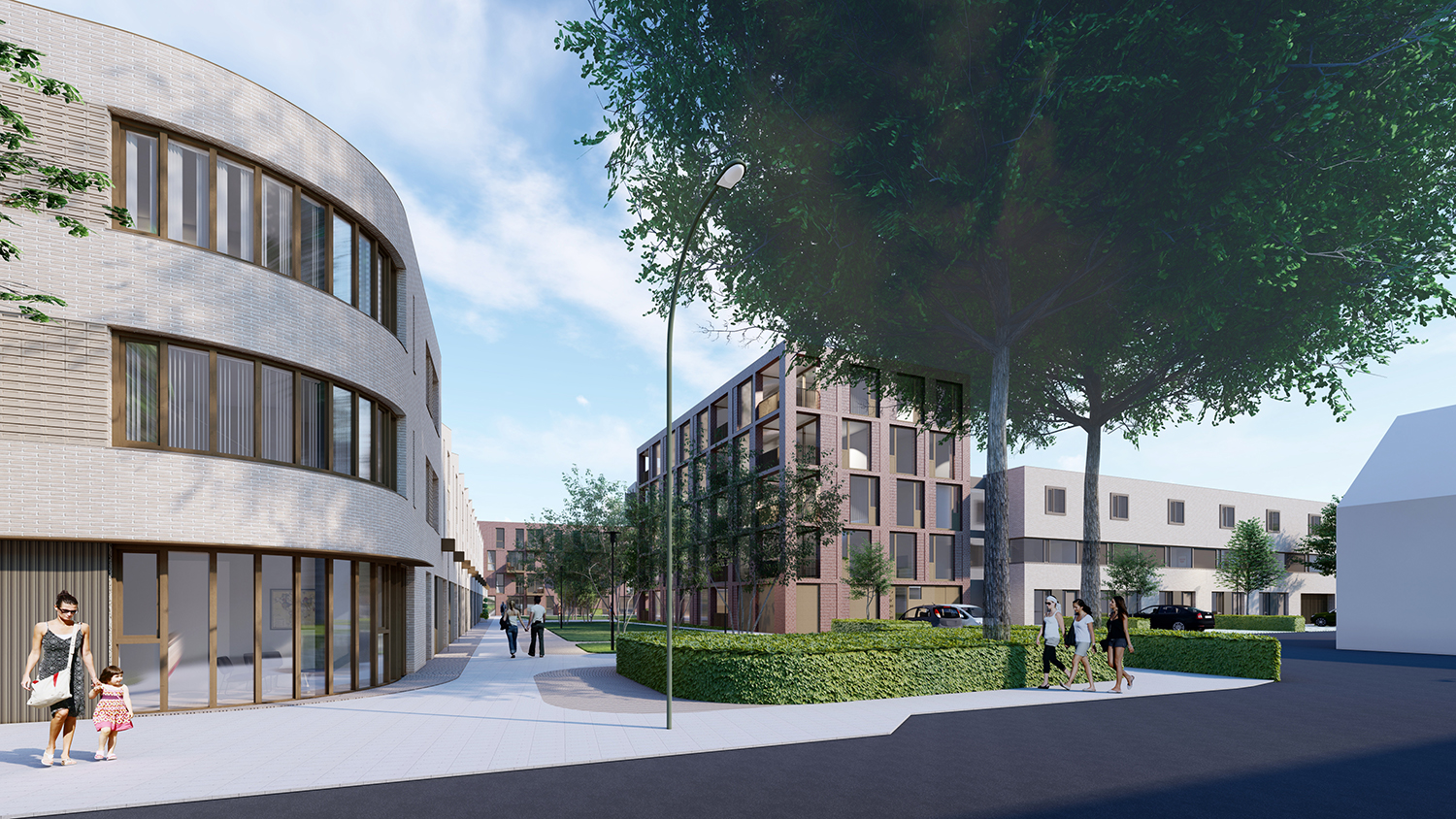 Met deze diversiteit willen we de dynamiek rond het park versterken en de woonomgeving aantrekkelijk maken voor een breed publiek. In totaal worden er 143 woningen gerealiseerd met een evenwichtige mix van huur en koop (82/61) en variërend in 2-kamerappartementen, 3-kamerappartement, grondgebonden woningen, stadswoningen en beneden-bovenwoningen.