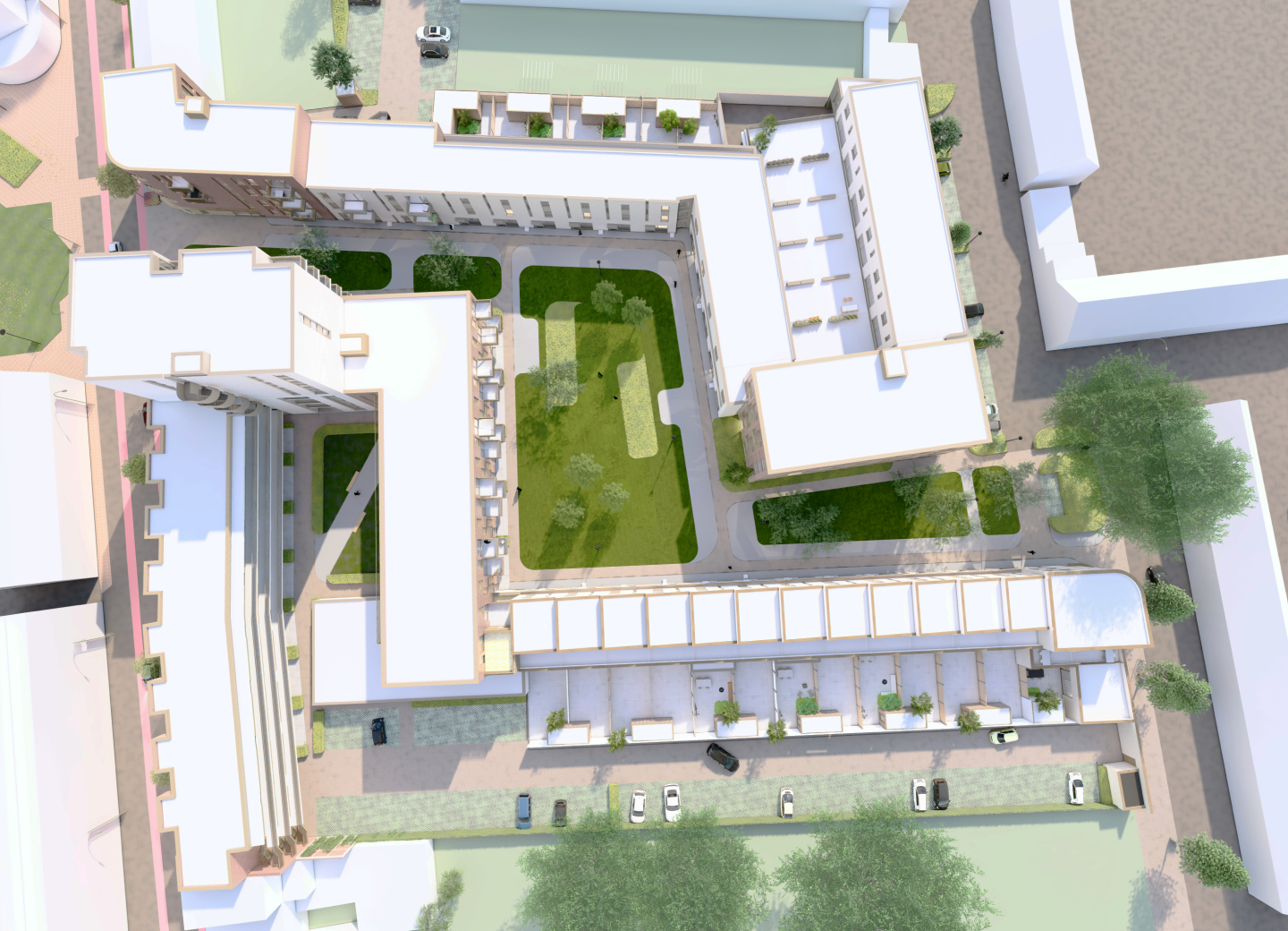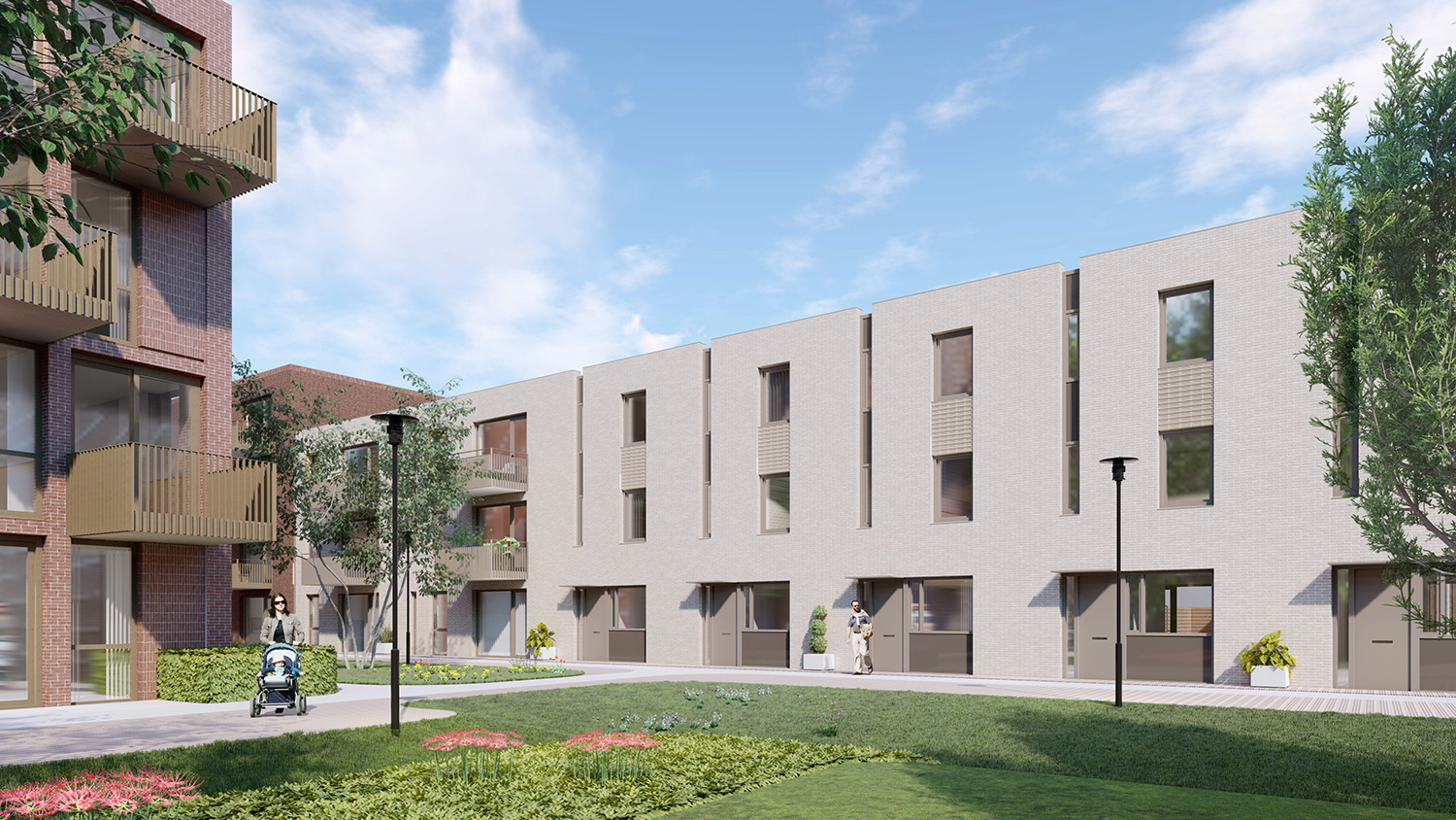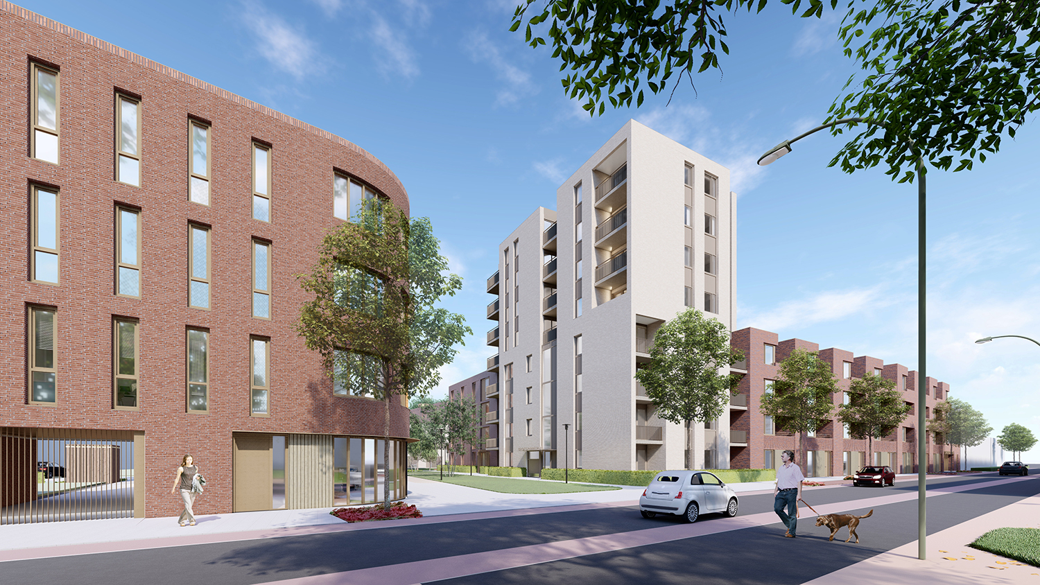 Met deze diversiteit willen we de dynamiek rond het park versterken en de woonomgeving aantrekkelijk maken voor een breed publiek. In totaal worden er 143 woningen gerealiseerd met een evenwichtige mix van huur en koop (82/61) en variërend in 2-kamerappartementen, 3-kamerappartement, grondgebonden woningen, stadswoningen en beneden-bovenwoningen.